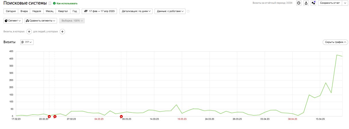 Базовая оптимизация ресурса привела к увеличению среднего трафика в день с 20 до 400.