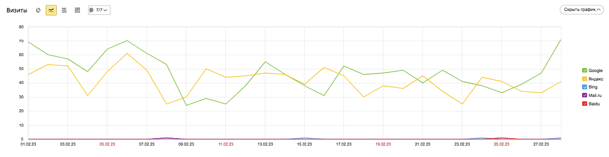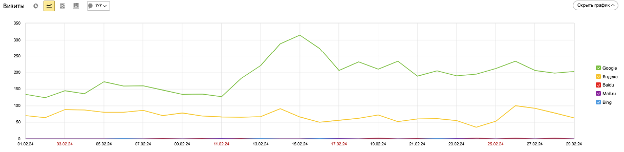 Органический трафик в месяц увеличился на 5 112 в сравнении с предыдущим периодом (февраль 2023).